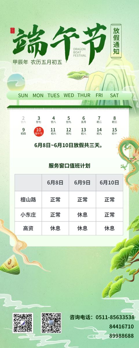 检测中心2024年端午节服务窗口值班计划